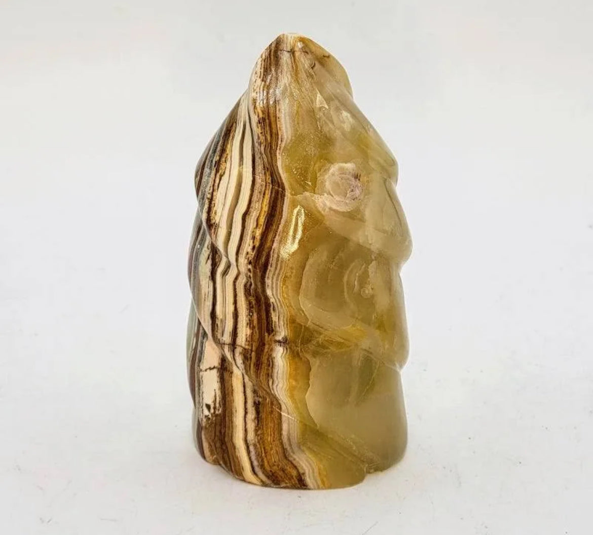 Our Onyx Flame Crystal is a powerful symbol of transformation and personal growth. Hand-carved into a mesmerizing flame shape, this crystal embodies the energy of fire, igniting motivation and inner strength. Onyx, with its grounding properties, provides protection and stability, making it a perfect addition to any sacred space.