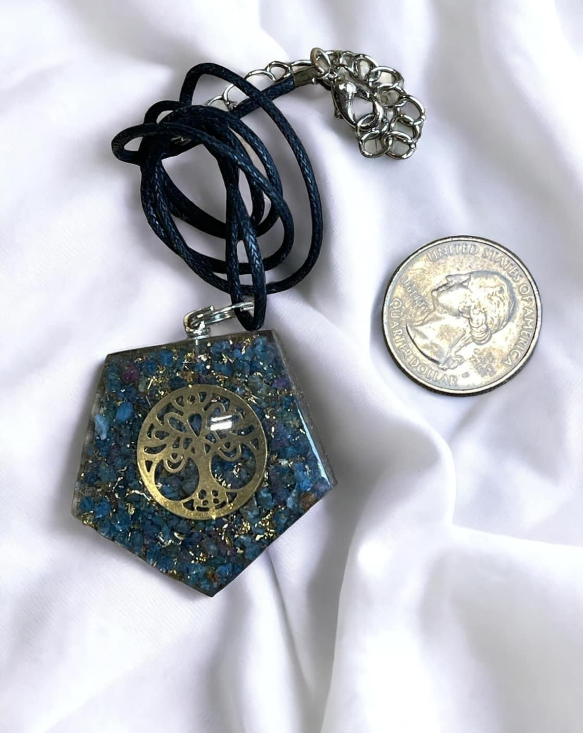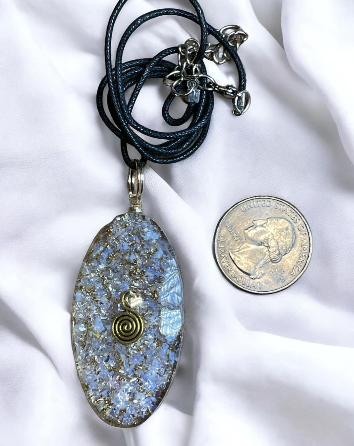 Each Orgonite Crystal Necklace is unique, with variations in crystal inclusions and patterns, ensuring that your piece is truly one-of-a-kind. Embrace the powerful energy of orgonite and let this beautiful necklace support your journey towards a balanced and harmonious life.